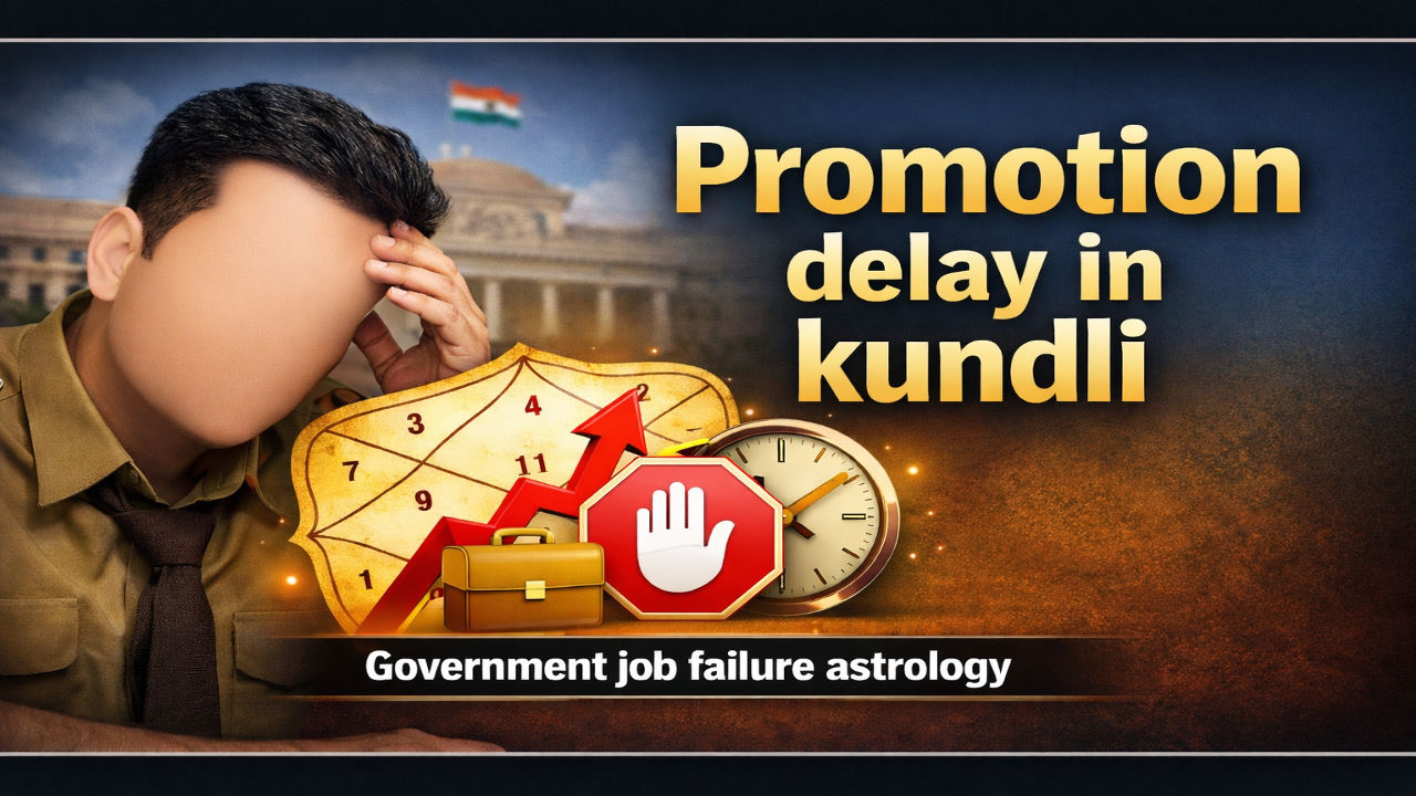 Promotion delay in kundli often shows up when the chart’s “career zone” is under pressure—especially the 10th house, its lord, and the Sun (status, authority). Is your hard work going unnoticed, or are roles opening up but not landing in your favor? Common patterns include a weak/afflicted Sun, Saturn’s heavy influence causing slow recognition, or Rahu creating office politics, confusion, and sudden reversals. If the 10th lord is weak or trapped with harsh aspects, results can feel stuck even when performance is strong.