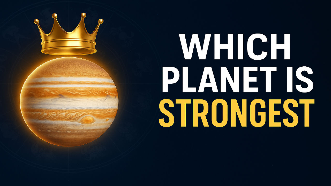 Which planet is strongest depends on your individual chart. Strength comes from dignity (own or exalted sign), house position (angles 1/4/7/10 and trines 1/5/9), supportive aspects, and measurable scores like shadbala. Is the Sun automatically strongest? Not always—the Sun gives authority, the Moon rules emotions and public appeal, Mercury drives logic and business, Venus refines relationships and wealth, Mars fuels courage, Jupiter expands wisdom and fortune, and Saturn grants stability through discipline. Which of these is most dominant in your horoscope?