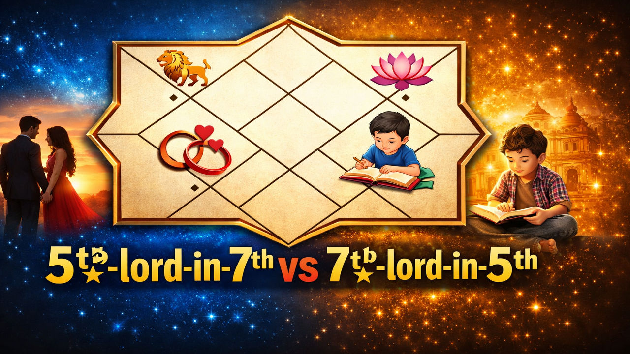 So which placement is “better”? Think of direction. 5th lord in 7th shows romance flowing into partnership; 7th lord in 5th shows partnership shaping romance and family happiness. Judge the outcome by how strong the planet is, whether it receives supportive help, and whether it faces heavy pressure—because that decides stability, delay, and maturity. If you’re assessing your own chart, ask: does affection stay consistent once responsibilities arrive, and do both people respect boundaries? Which one matches your life more—the story where love becomes commitment, or the story where commitment keeps love alive?