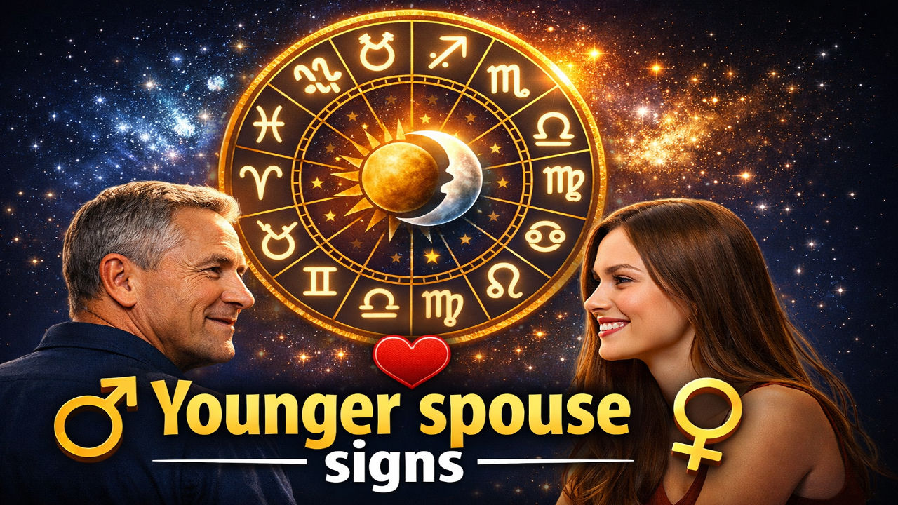 Strong Younger spouse signs often include Mercury placed in the 7th house, the 7th lord linked to Mercury, or the 7th house connected to Gemini or Virgo influences. These patterns can also show a spouse who is youthful in appearance, social, modern and mentally active. Does Mercury always mean a younger spouse? Not always—sometimes it shows a youthful personality, a partner who stays fit, or someone whose work is related to communication, business, travel or technology. If you are comparing patterns across specific spouse themes, see foreigner spouse signs as a related watch page.